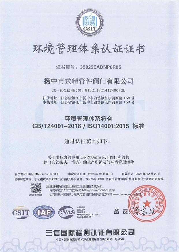 环境管理体系认证证书